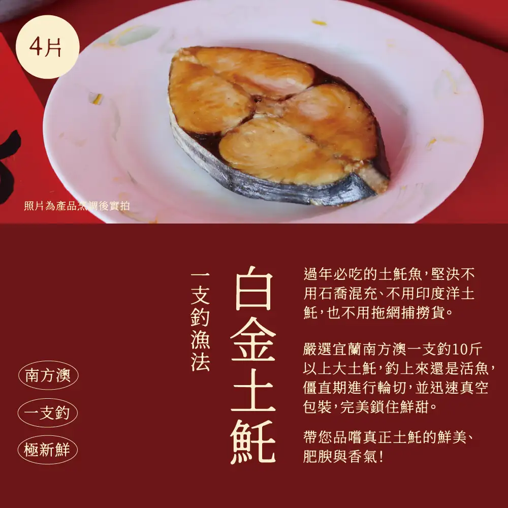▍嚴選 𝟔.𝟓𝐤𝐠 以上、來自宜蘭南方澳純淨海域「一支釣」土魠,當日手釣返港,去除內臟輪切後以-𝟔𝟎°𝐂急速冷凍,油脂豐富、肉質Q彈、鮮甜多汁,跟網撈 (上岸死亡較久) 的土魠魚品質完全不一樣!